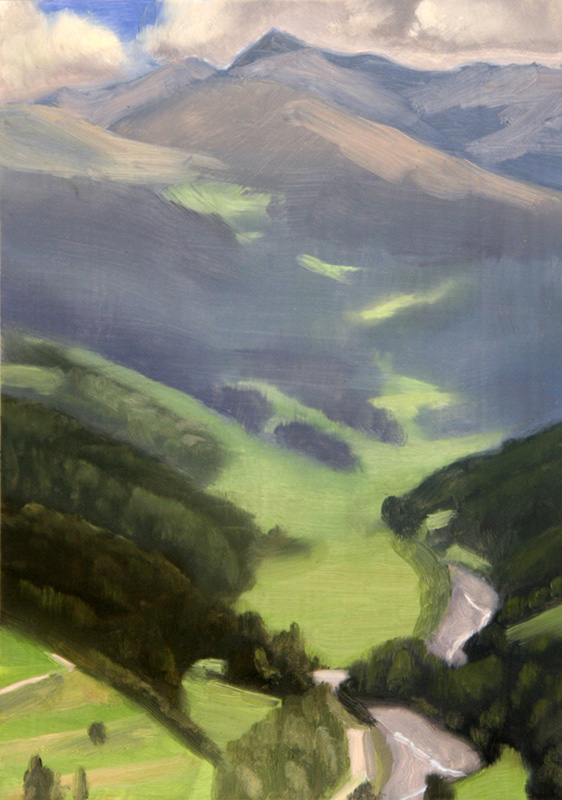 Alpine View Near Bormeo mounted on cradled wood 7" x 5" x 3/4 2017